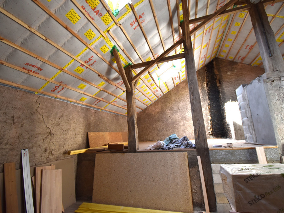 Toiture complète neuve (2021), chauffage au sol (central bois avec ballon tampon de 3000 L), électricité neuve, intérieur intégralement doublé et isolé, double vitrage, assainissement individuel aux normes.