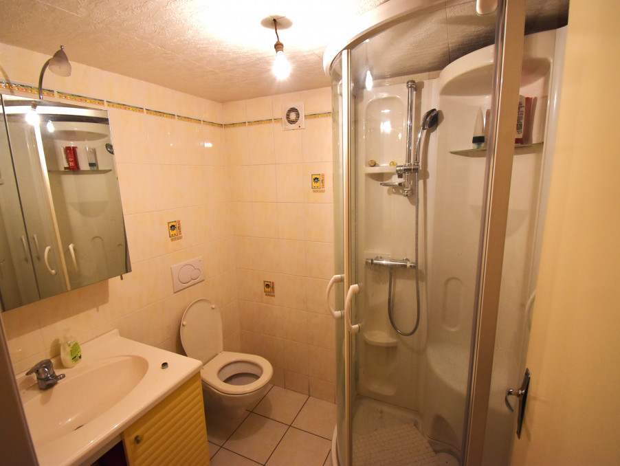 Grand sous-sol, avec une chambre, salle de bains et wc n°2, garage, deux ateliers et chaufferie.