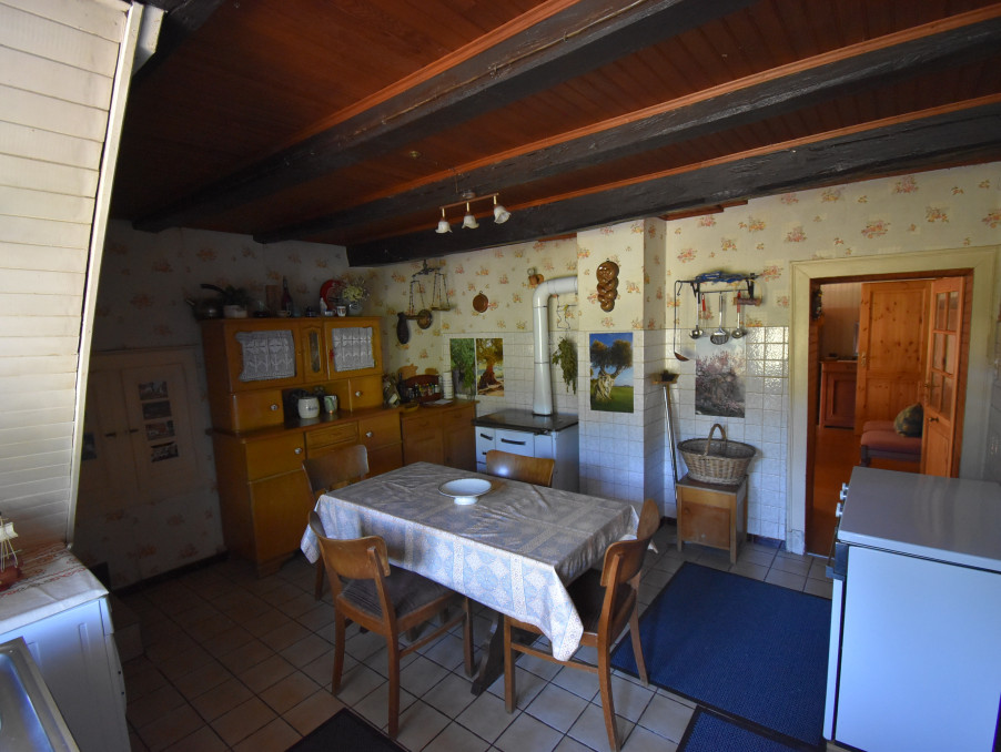 Au rez de chaussée, cuisine, salon, wc, salle de bains et remise;